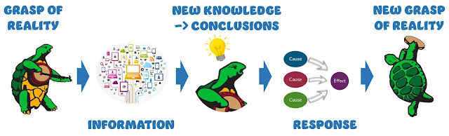Learning is uptaking new knowledge or understanding and responding accordingly going forward. Assimilating data into a coherent evolving world view.